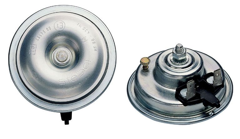 Electromagnetic disc horn, available in single unit (high or low tone), or in twin set. Thanks to its limited size and weight it is often fitted in standard automotive production (OEM), as an alternative to TM80 Series. Its reduced dimension make it the most popular type for motorcycle use. Used also as a siren in alarm system. Homologated by CEE-ECE.